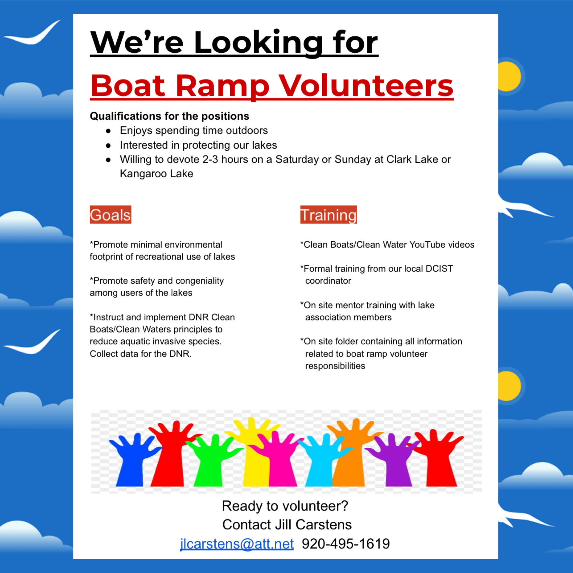 We’re looking for Boat Ramp Volunteers! CLICK HERE to look at the flyer if you’d like to be a volunteer and help out!
